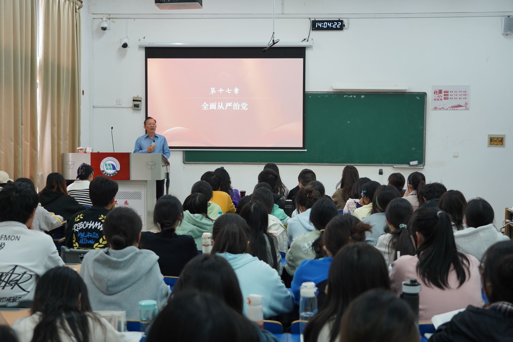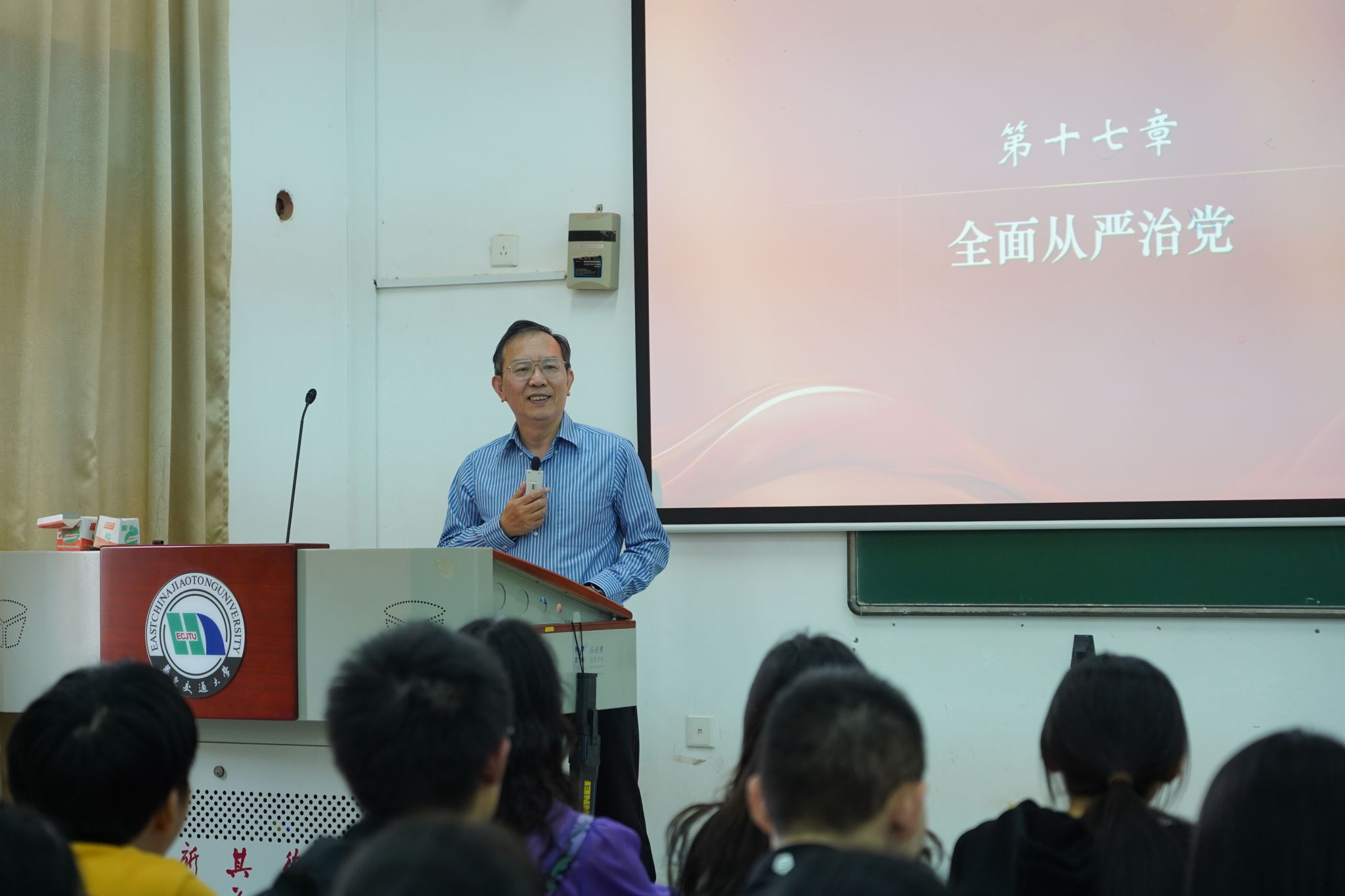 课堂上,柳和生以“全面从严治党”为题,结合案例娓娓道来,从“从严治党是马克思主义政党的政治优势”“全面从严治党是实现民族复兴的根本保证”“全面从严治党是决定党兴衰成败的关键因素”三个方面,阐明了中国共产党建党以来管党治党的宝贵历史经验,特别是党的十八大以来,加强全面从严治党、推进反腐败斗争波澜壮阔的发展历程与重大成就,积极引导学生理解全面从严治党的重大意义。