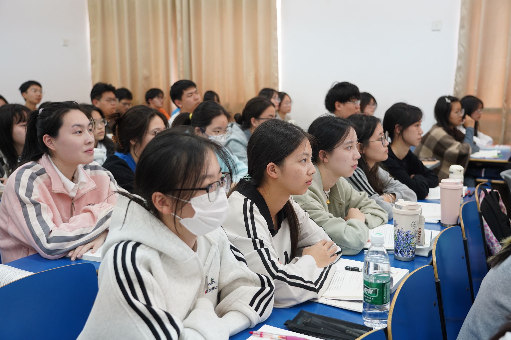 课堂最后,他寄语同学们,要珍惜美好的大学时光,上好大学,把大学上好,做到精神成人、学业成才,在思政课中培养思能力和正能量,努力成长为堪当民族复兴重任的时代新人,不负党和人民的殷切期待。(马莉娅 摄)