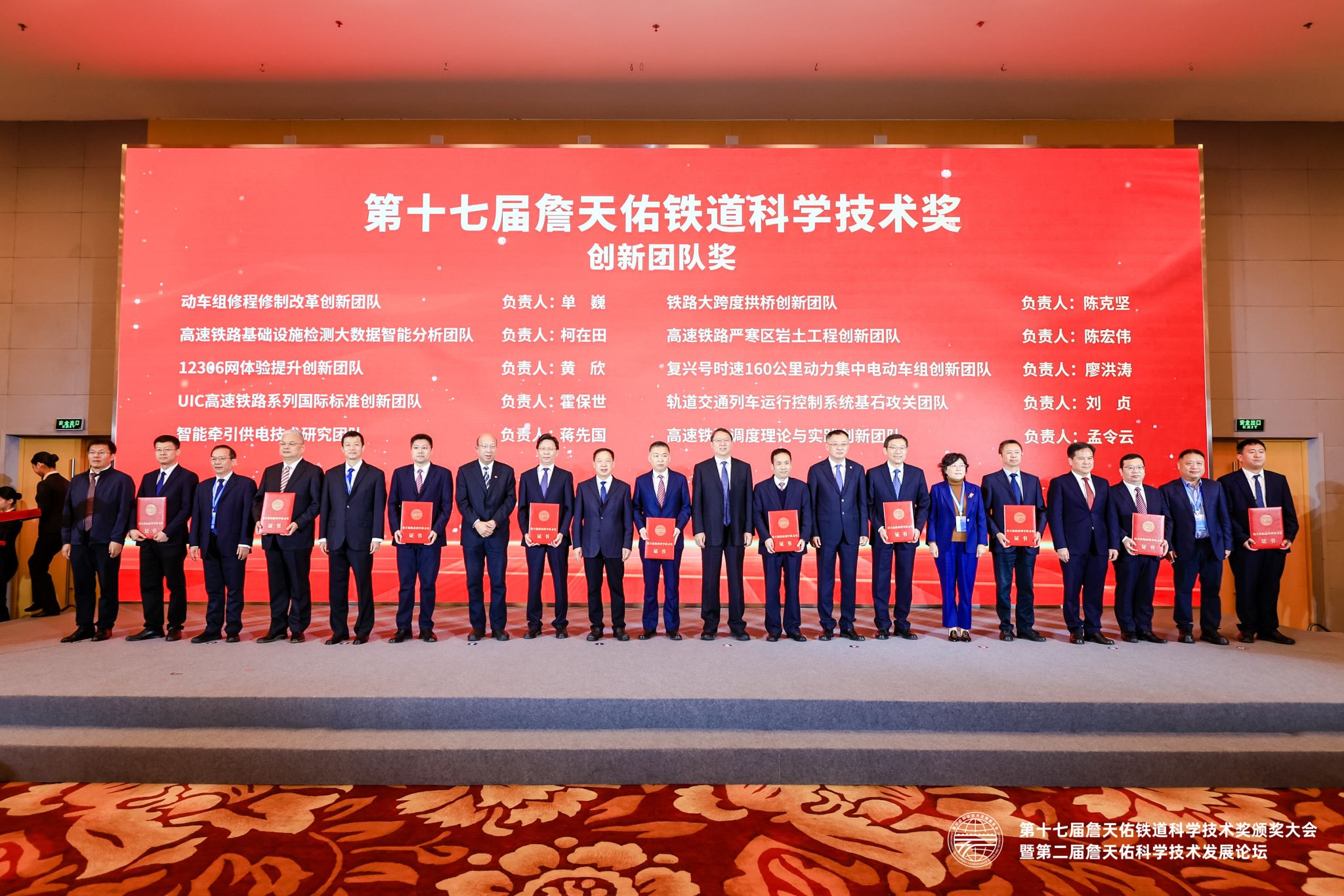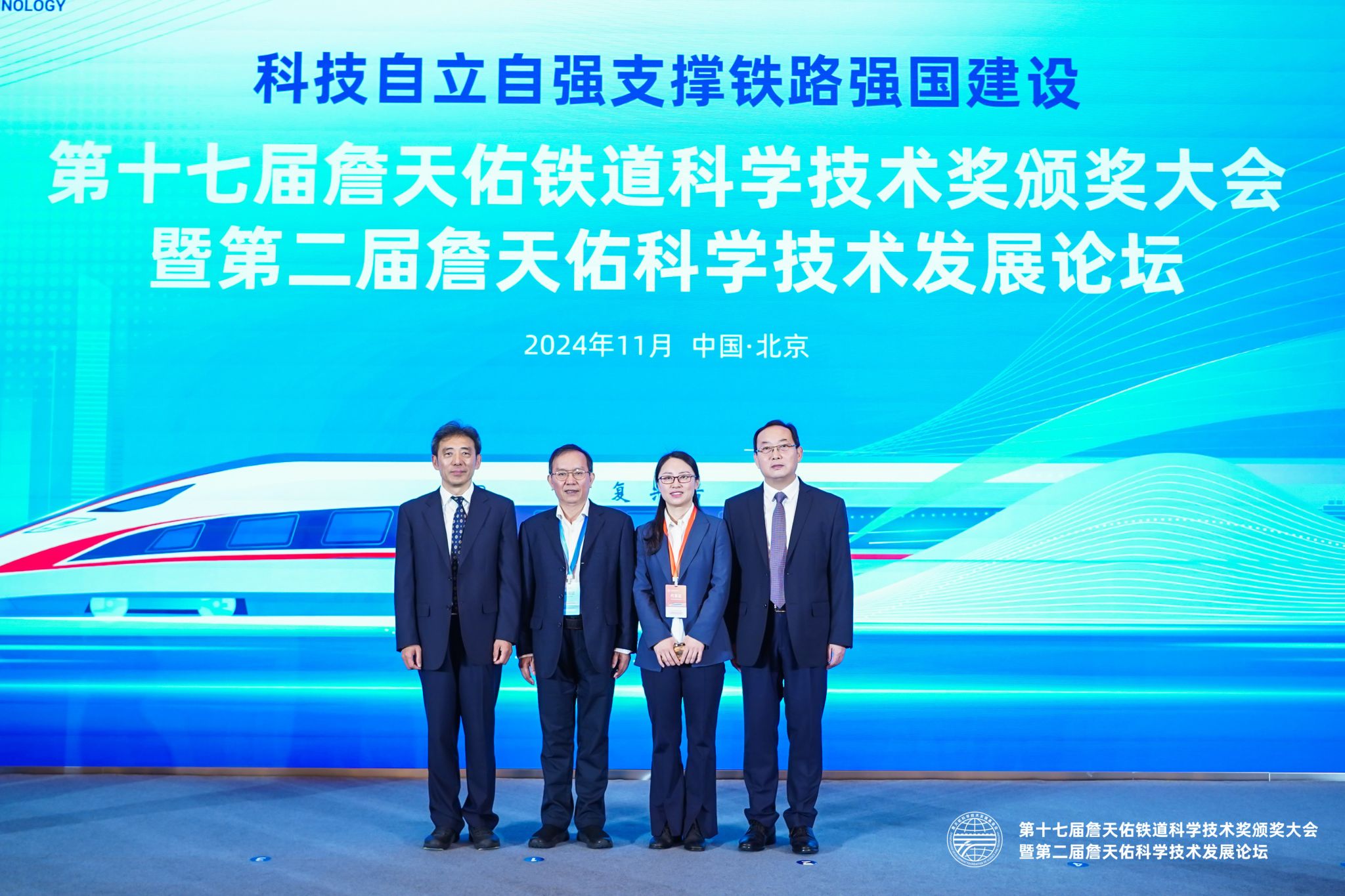 据悉,詹天佑铁道科学技术奖是经国家科学技术奖励工作办公室审查批准登记的科技奖项,是铁路行业和轨道交通领域的权威科技奖项,每2年颁发一次。本届颁发了詹天佑铁道科学技术奖3名最高奖、41名成就奖、90名青年奖和10个创新团队奖。这些科技成果成功破解了铁路工程建设、装备制造、运营维护等领域一系列科技难题,形成了谱系化复兴号动车组、CTCS-3级自主化列控系统、“空天地”一体化综合勘察技术、超大盾构机主轴承、12306铁路互联网售票系统、轨道交通气动效应及减震降噪基础研究等一批重大科研成果,为巩固和发展我国铁路科技世界领先地位提供了有力支撑。