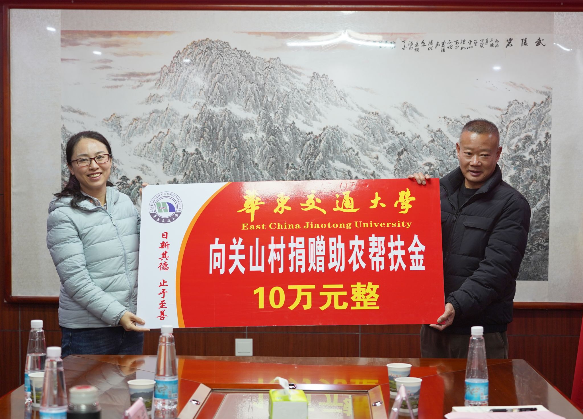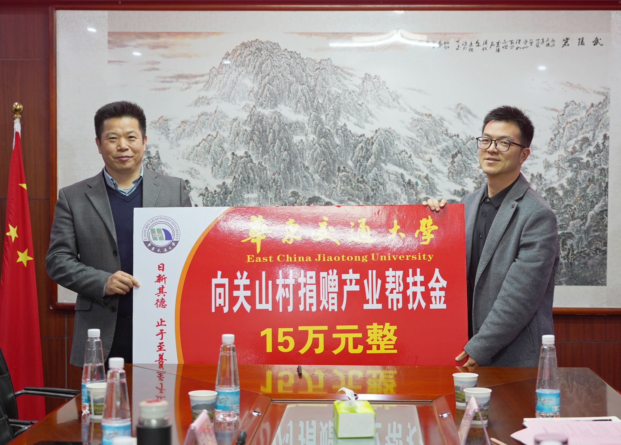 徐长节、罗文俊分别代表学校向关山村捐赠15万元产业帮扶金和10万元助农帮扶金。工会、华交产业集团负责人与关山村负责人签订了相关帮扶协议。