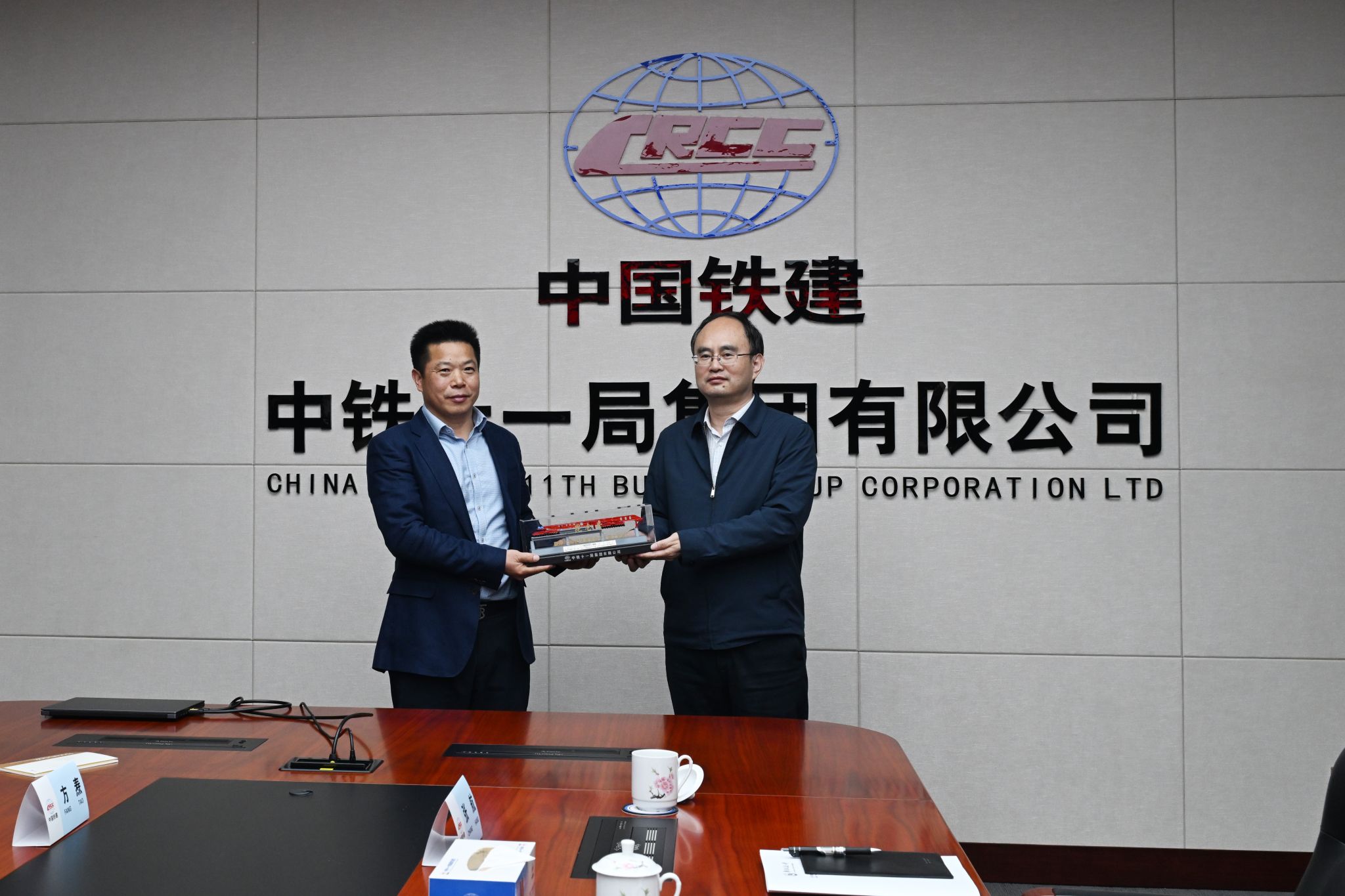 在十一局,党委副书记吴刚陪同徐长节一行参观了企业展览馆,并向学校赠送了“‘昆仑号’千吨级高铁箱梁运架一体机模型”。座谈会上,吴刚从十一局的历史沿革、人才结构、经营业绩等方面详细介绍了企业的发展情况。他对学校多年来对十一局事业发展的支持表示感谢,期待校企双方能在人才培养、产学研合作、特殊岗位定制化培养、教师现场学习和交流等方面进一步深化合作。徐长节表示,学校目前处在转型期,通过和企业的交流为我们的转型提供了思路,学校和十一局将在人才、科技、市场等多方面进行资源互补,今后的合作一定有更广泛的空间。此次交流,双方还就建立校企战略合作伙伴关系达成了共识。