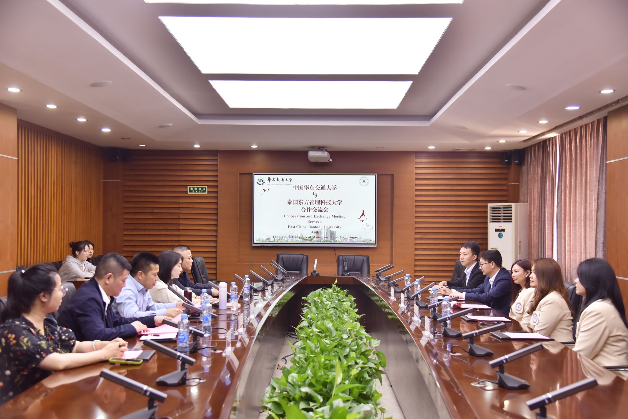 徐长节对泰国东方管理科技大学一行的到来表示欢迎,并简要介绍了校情。他指出,2025年是中泰建交50周年,教育合作是推动两国关系深化的关键力量,期待通过本次交流,共同探索符合两校特色的合作模式,为未来人才培养和国际交流建立坚实起点,共同构筑两校合作的蓝图,为中泰教育合作贡献智慧与力量。