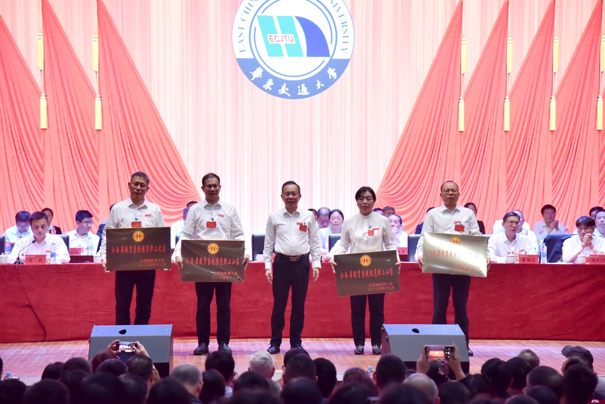 校党委委员、副校长欧阳志刚作学校财务工作报告。肖乾宣读优秀教职工代表及工作先进单位的表彰决定。校领导分别为获评江西省教育系统模范职工之家、职工小家,八届四次教代会暨工代会“办理提案先进单位”及“优秀提案”,2024年交大好人,2023-2024年度工会工作先进集体颁奖。大会书面审议了教代会提案工作报告、工会工作报告、工会经费收支情况报告。