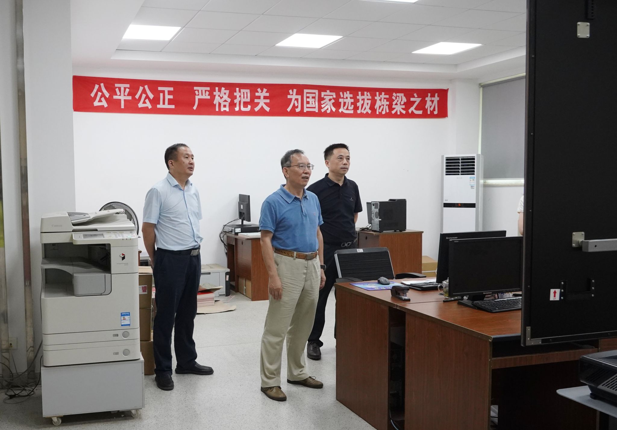 在招生录取现场,校领导详细听取了招就处关于今年录取情况的总体汇报,实地查看了阅档、审核、数据管理等环节的运行情况,对招生录取工作的规范性和高效性给予充分肯定。