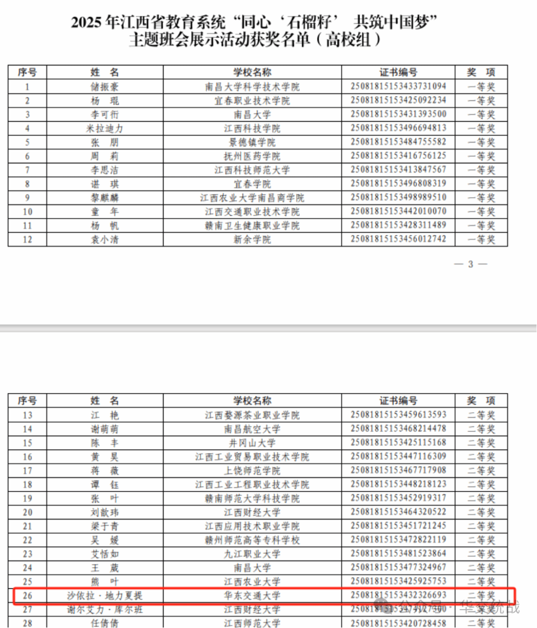 近日,江西省教育厅公布了2025年“石榴花开,赣教风采”江西省高校《中华民族共同体概论》课程教学展示活动评选结果和2025年江西省教育系统“同心‘石榴籽’共筑中国梦”主题班会展示活动评选结果。