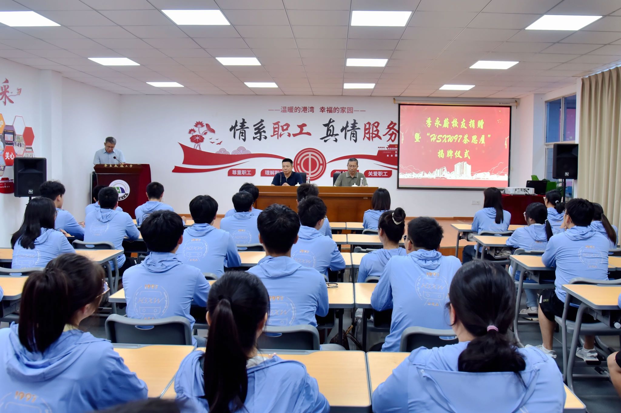 9月18日,学校举行校友捐赠暨“茶思屋”揭牌仪式。校党委副书记、校长徐长节,土建学院1986 级工民建专业校友、华盛兴伟公司董事长季永蔚出席仪式并致辞。