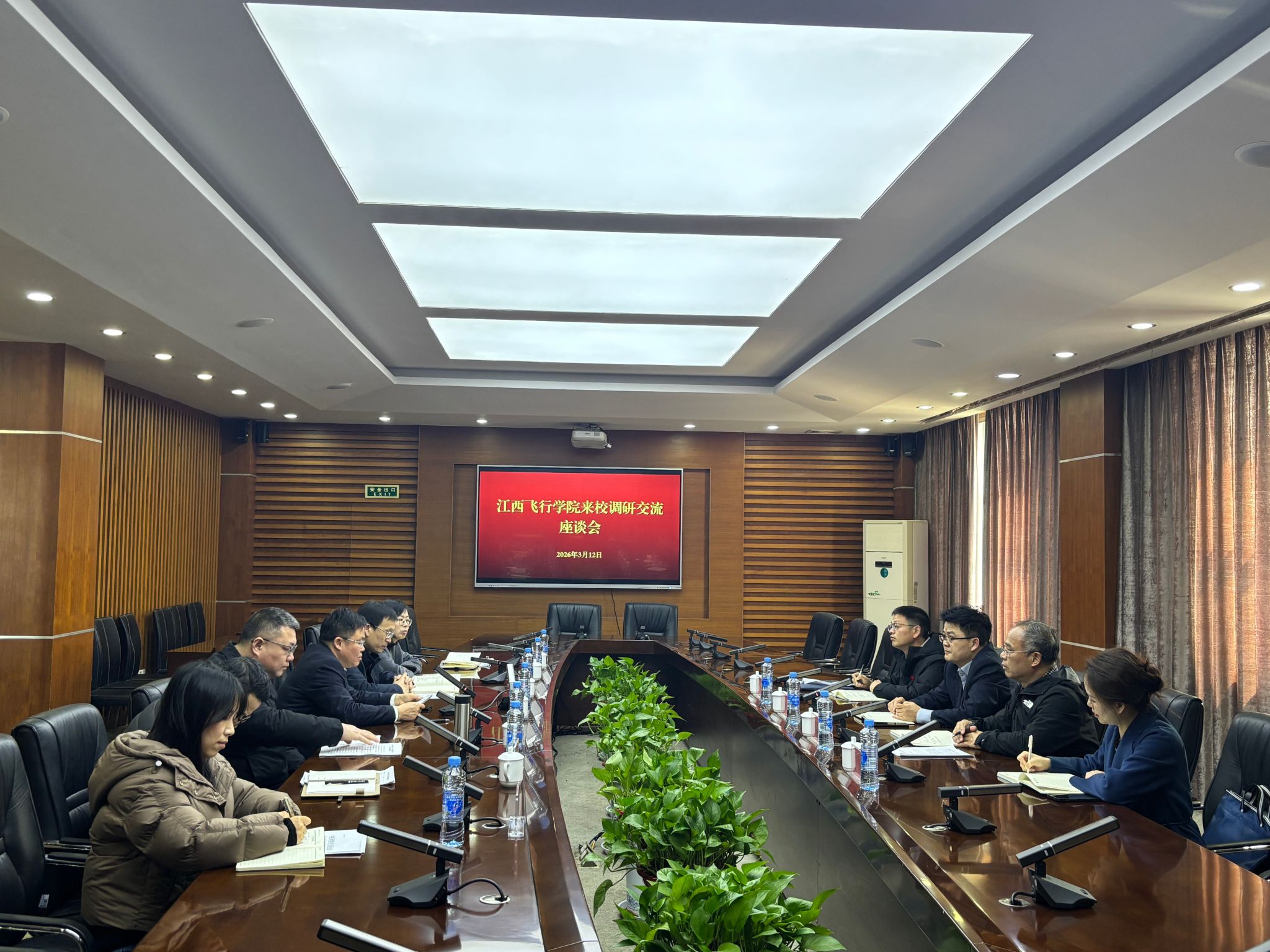 3月12日,江西飞行学院党委副书记张海涛一行来校座谈交流,调研综合考核工作。校党委副书记杨德敏主持座谈会。