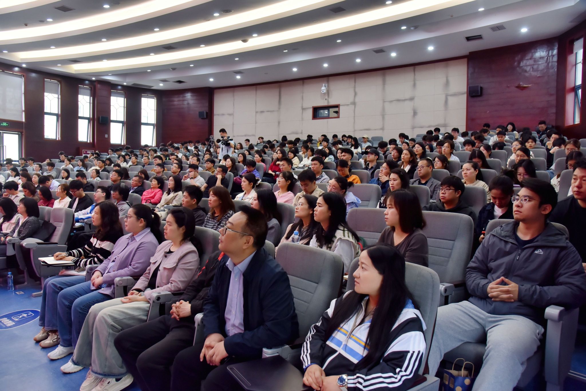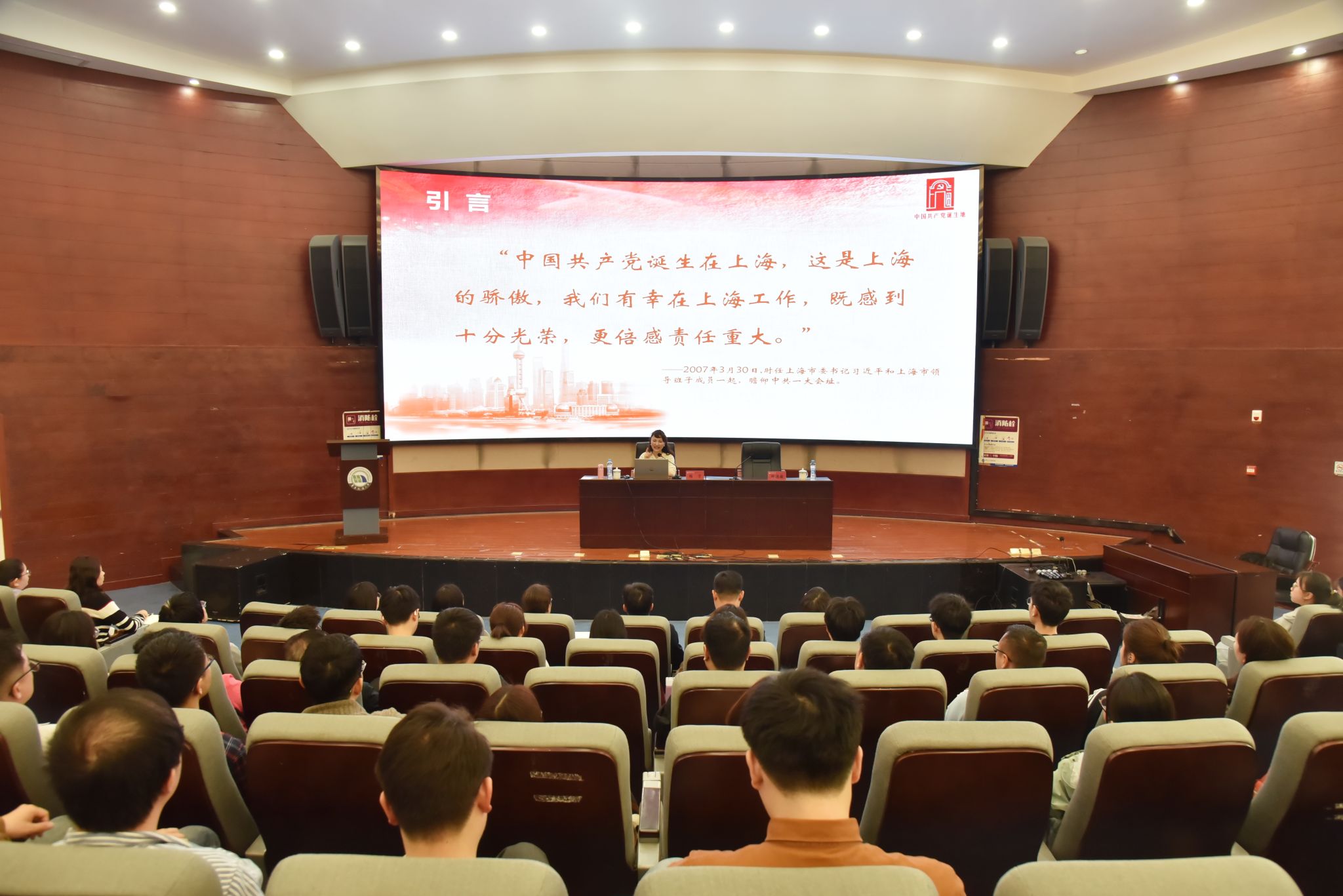 全校各党支部书记及学生代表共计300余人聆听思政课。(陈之香 摄)