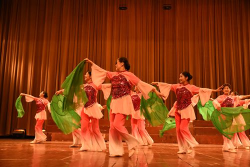 活泼的夹板舞《喜乐年华》、舞蹈《鄱湖水乡美》,团员们笑容满面,向在座的观众展示了他们对歌舞器乐的喜爱,对待生活的乐观。男声四重唱《弹起我心爱的土琵琶》,悠扬婉转的手风琴声,五位演员默契的配合,引得现场掌声不断,喝彩连连。舞蹈《红色记忆》,演员们身着红色的舞蹈服,全身心投入舞蹈中,以情带舞,心形同一,用舞姿将其中的革命情感淋漓尽致得展现出来。艺术团的参演者们以不同的形式,传递着每个人对红色革命同样的崇敬。