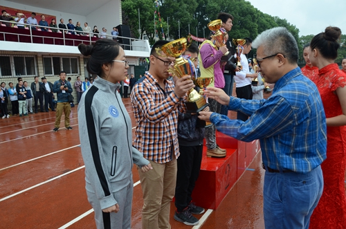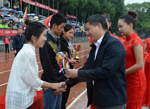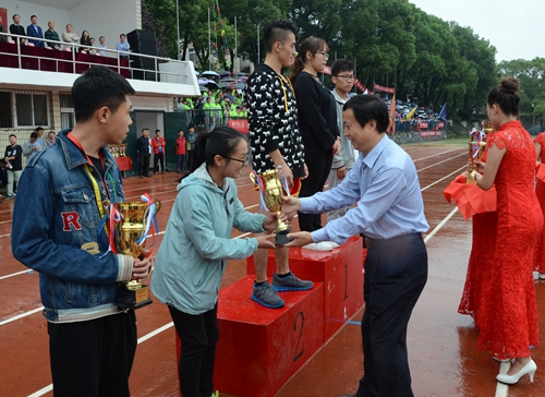 校党委书记万明为获得团体总分前三名的交通运输与物流学院、信息学院、土建学院颁奖。校长罗玉峰为获得团体总分第四、五、六名的学院颁奖,校党委副书记汪立夏为获得体育道德风尚奖的学院颁奖,副校长张玉清为获校园体育文化竞赛总分前六名的学院颁奖。