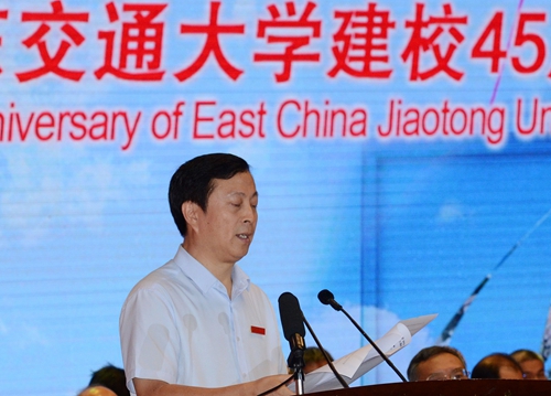 “回望岁月,前人恩承荫庇;登高望远,学校如日东升。‘既然选择了远方,便只顾风雨兼程。’为了建成全国知名交大、区域一流大学,为了共圆‘江西领先、行业前三’的‘百年交大梦’,我们一起努力!”现场报以热烈的掌声。