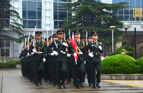 全体校领导、中层干部,全体国防生及千余名教师、学生代表参加升旗仪式。(摄影/刘荣)