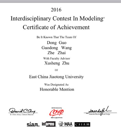 在2016年美国大学生数学建模竞赛上,WilliamHill官网理学院2013级学生王国栋、翟喆和电气学院2013级学生郭栋组队首次代表WilliamHill官网参赛,喜获二等奖。