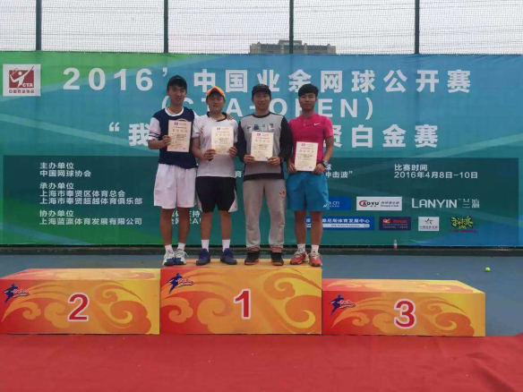 刘查鑫、潘一夫和张丹教练、付玉刚分别获得男子双打冠军和季军