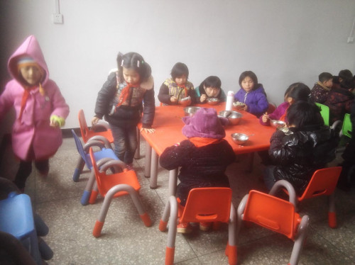 在得到项目认捐成功的消息后,军屯小学的孩子们脸上都洋溢起了幸福的微笑。军屯小学相关老师立即组织实施,购置了最适合孩子们吃饭使用的桌椅,现在孩子们已经可以坐着开心地吃上一顿中饭了。同时搭建洗碗间的工作也已开展,老师们争分夺秒只为了能让孩子们能尽快使用上相关设施,吃上一顿安稳的爱心午餐,同时不再被风吹雨淋。