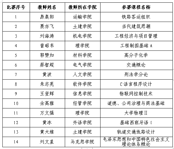 15名“天佑主讲教师”候选人和14名“天佑教学新星候选人”比赛课程和顺序详见下表:
