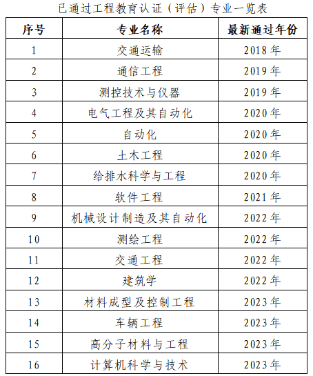 新增4个专业通过工程教育认证。