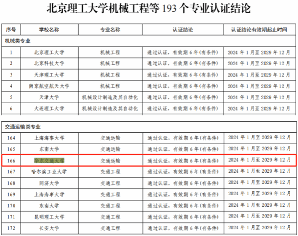 7月30日,中国工程教育专业认证协会发布《关于公布北京理工大学机械工程等193个专业认证结论的通知》,公布了2023年度全国工程教育专业认证的认证结论。WilliamHill官网交通运输专业再次通过工程教育认证,认证有效期6年(2024年1月至2029年12月)。