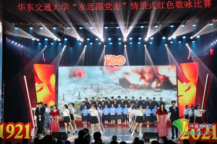 《胜利之歌》《歌唱祖国》《我们走在大路上》,欢快的旋律洋溢着胜利的喜悦,彰显了建设社会主义新中国的自信与豪迈。《春天的故事》《北京欢迎你》《我们的新时代》《最美的约定》《百年》等歌曲,以朗诵、舞蹈、合唱、情景剧等多种形式,集中反映了中国共产党领导全国各族人民经过不懈奋斗,迎来了从站起来、富起来到强起来伟大飞跃的辉煌历程。比赛在全场师生同唱《奋进,华东交大》的雄壮歌声中落幕。