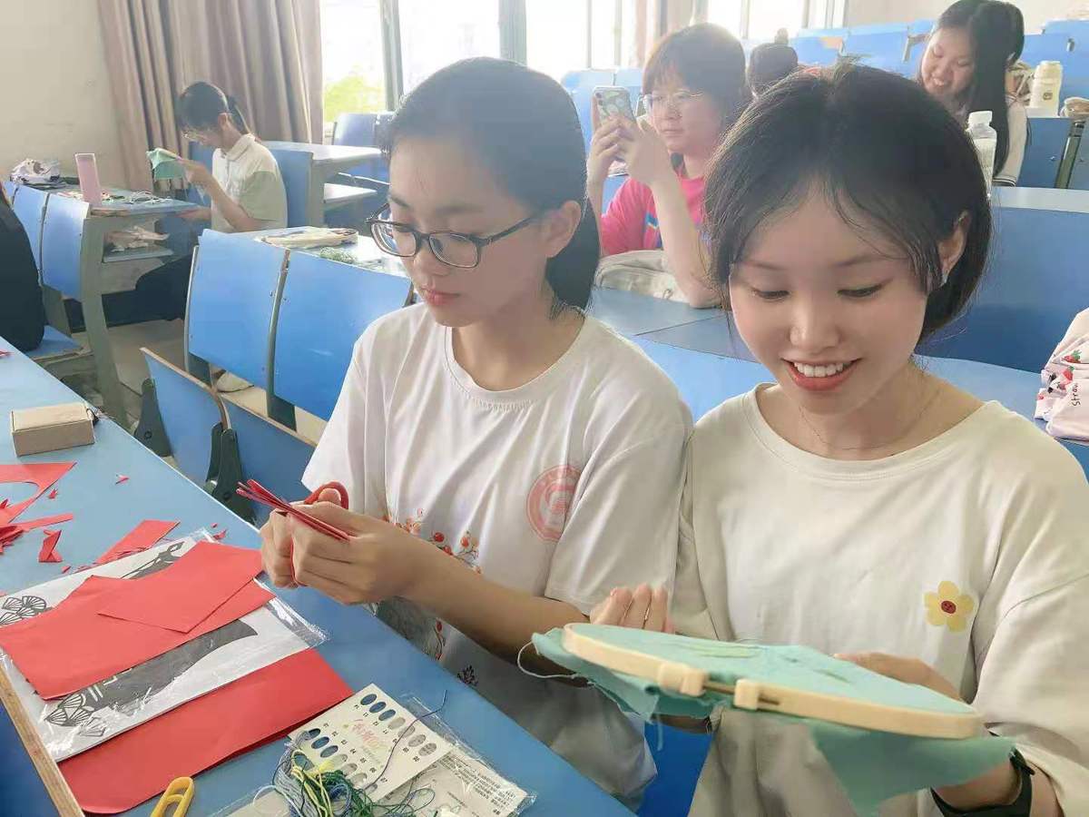 据了解,不少学生是首“绣”,他们主要是通过老师指导和同学互相间交流而得到刺绣的启发和提高。“设置课程的目的是从思政方面进行教育引导,让同学们在一针一线的制作过程中涵养人文气质,传承红色基因。”在教师阮学云看来,传统技艺与献礼百年华诞相结合,既是对中华优秀传统文化的继承与弘扬,也是对爱国爱校情怀的培育与滋养。