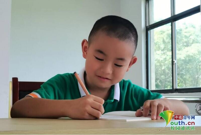 图为黄玉小朋友眼神中充满对知识的渴望。
