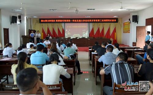 在鹰潭市余江区春涛镇邬桥村的集市上,该校暑期社会实践团成员们正生动形象地向村民们开展专题宣讲,结合一个个共产党员的故事,生动形象地向村民们分享了“一个庄严宣告”“一个伟大梦想”“一个伟大精神”“一个殷切希望”“九个必须”等内容。同时,实践团成员们立足学校办学特色,发挥自身专业所长,用一张张生动形象的图片和一个个贴近生活的故事介绍了中国共产党领导的火车科技发展史。