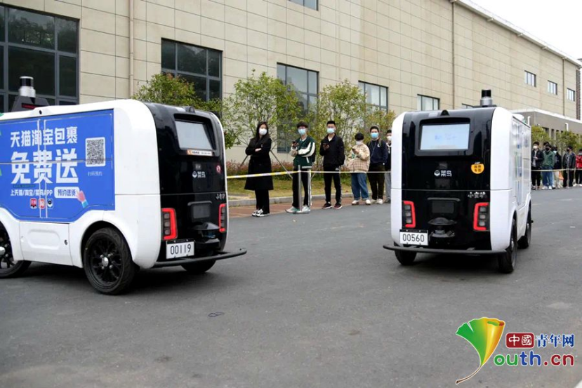 物流快递无人车“小蛮驴”为师生提供无接触快递上门服务。陈君 摄