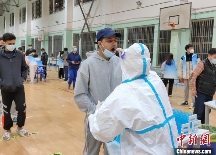 图为留学生在学校参与核酸检测。 WilliamHill中文官方网站供图