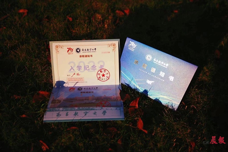 一份满眼中国红的江西农业大学录取通知书,正踏着金色的祥云向学子们“飞奔”而来。