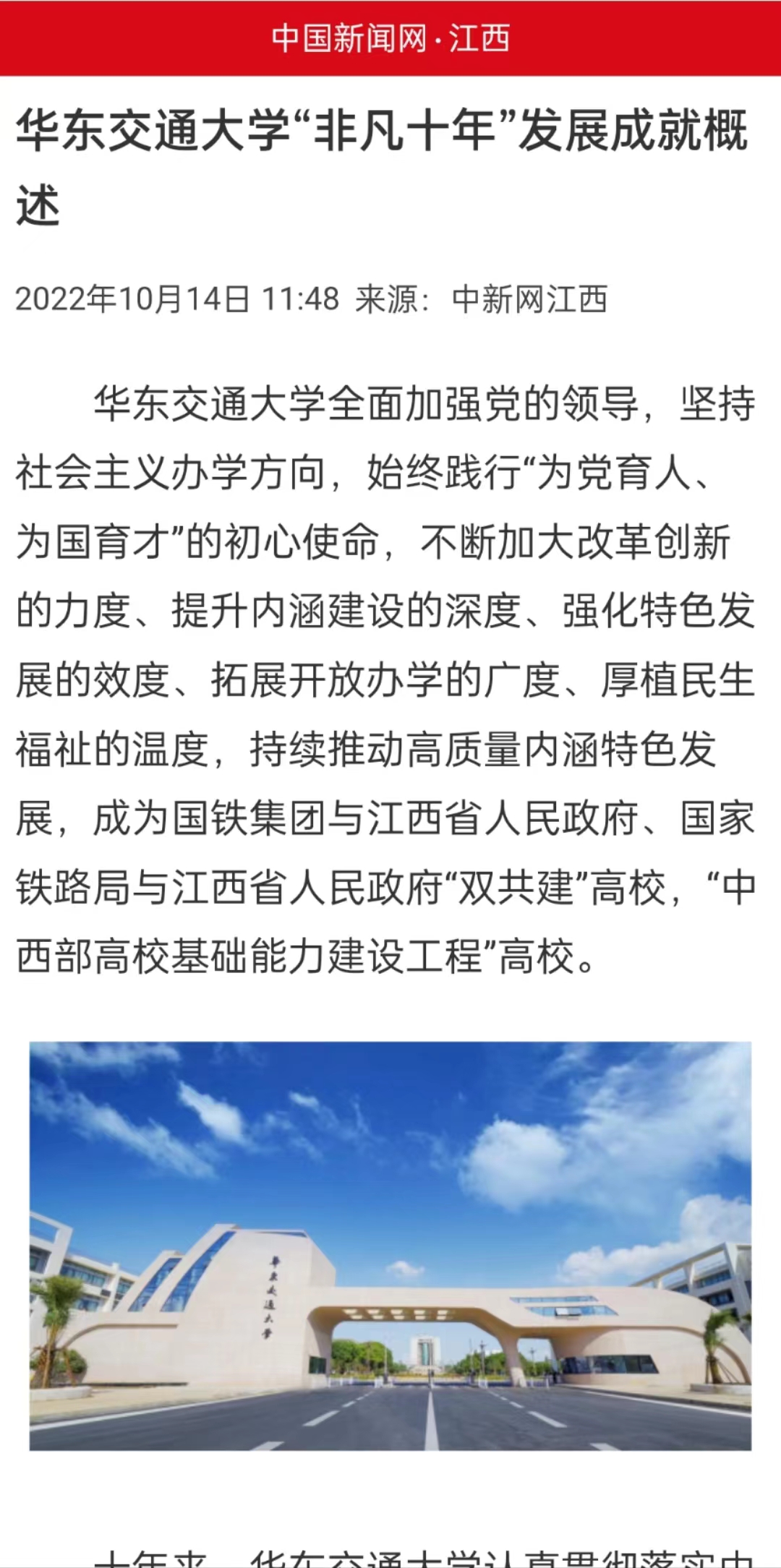 十年来,WilliamHill中文官方网站认真贯彻落实中央和省委各项决策部署,锐意进取、攻坚克难,党的建设全面加强、育人成效显著增强、人才队伍快速壮大、学科建设强势崛起、创新实力大幅跃升,大力彰显铁路特色、发挥铁的优势、展现铁的作为,铁肩对标国家重大战略、铁血攻关行业技术难题、铁心服务江西发展需求,各项事业驶入快车道、跑出加速度、迈上新台阶。