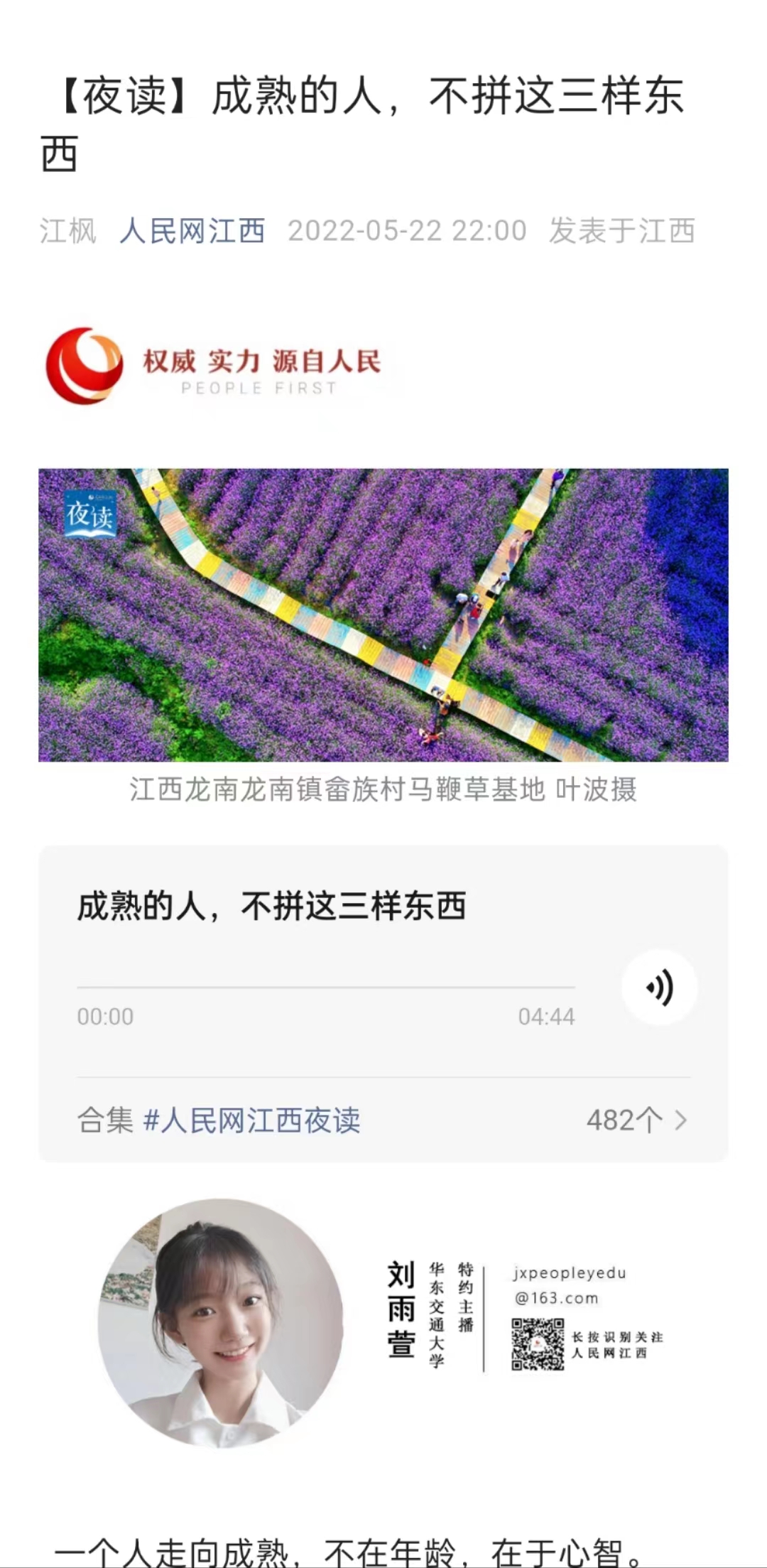 【人民网江西频道官微】华东交大特约主播刘雨萱:夜读|成熟的人,不拼这三样东西