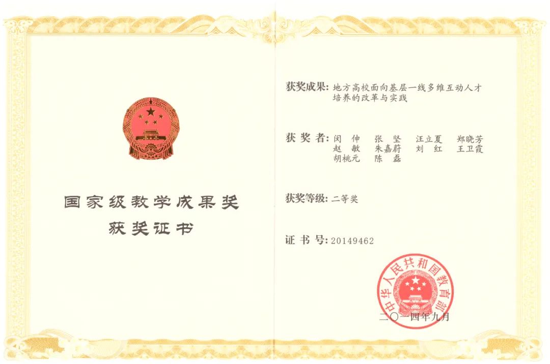 “地方高校面向基层一线多维互动人才培养的改革与实践”获国家教学成果二等奖
