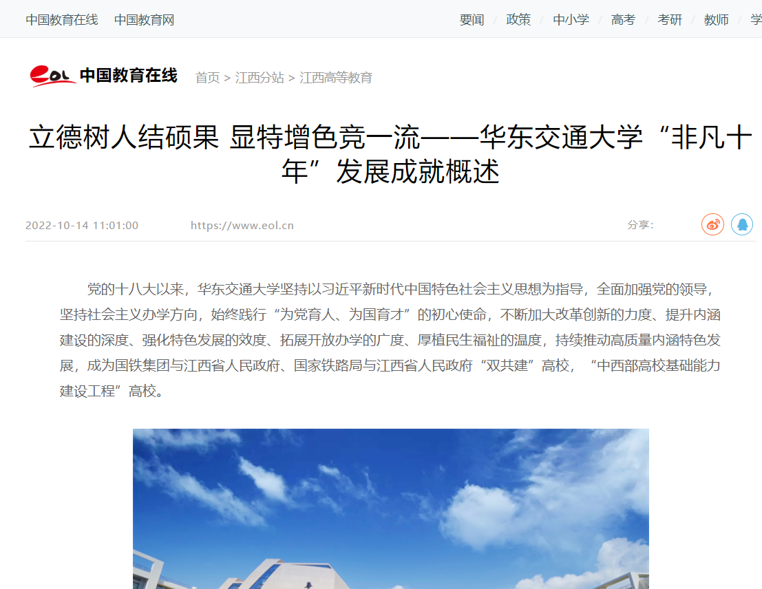 十年来,WilliamHill中文官方网站认真贯彻落实中央和省委各项决策部署,锐意进取、攻坚克难,党的建设全面加强、育人成效显著增强、人才队伍快速壮大、学科建设强势崛起、创新实力大幅跃升,大力彰显铁路特色、发挥铁的优势、展现铁的作为,铁肩对标国家重大战略、铁血攻关行业技术难题、铁心服务江西发展需求,各项事业驶入快车道、跑出加速度、迈上新台阶。