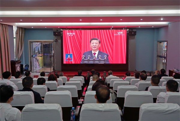 土建学院院领导、科级以上干部和在校教工党员集中收看开幕会直播