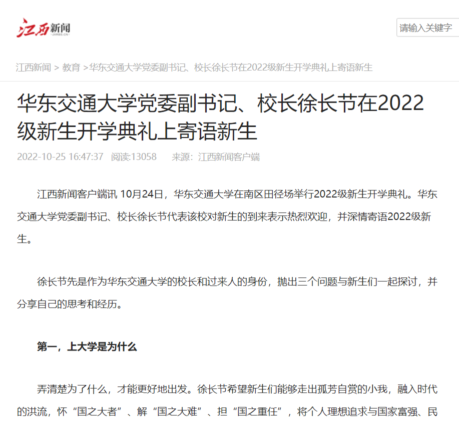 弄清楚为了什么,才能更好地出发。徐长节希望新生们能够走出孤芳自赏的小我,融入时代的洪流,怀“国之大者”、解“国之大难”、担“国之重任”,将个人理想追求与国家富强、民族复兴紧密相连,上下求索、创新创造,让青春在为祖国、为民族、为人民的不懈奋斗中绽放绚丽之花!