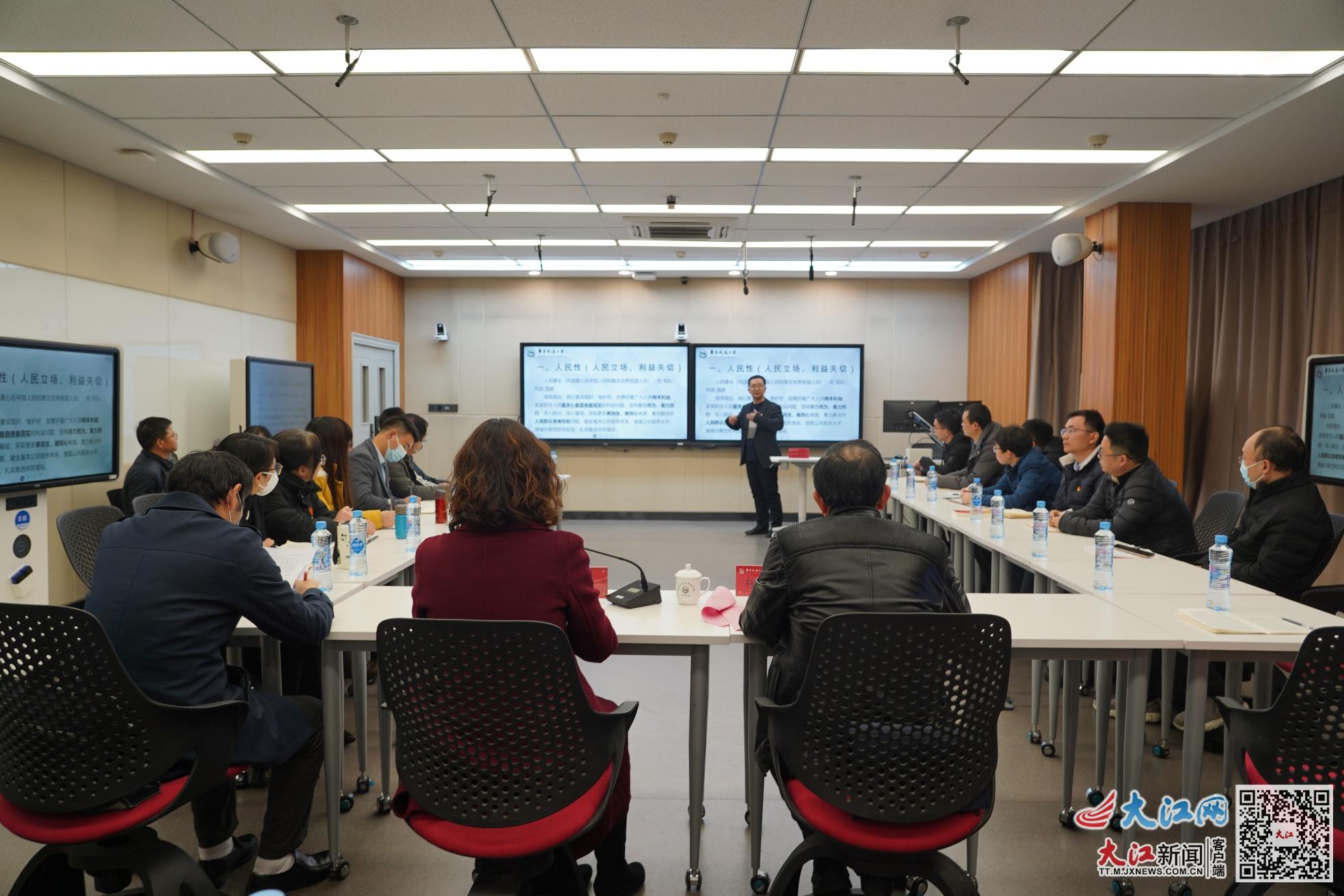 “中国式现代化道路是为了谁?人民。”“中国式现代化道路必须依靠谁?人民”“我们要办人民满意的教育。”马克思主义学院教师刘波从专业角度解读了党的二十大精神中的“人民性”内涵,并结合学校的“新铁军精神”详细阐述了怎样在办学治校过程中体现人民性、贯彻人民性,办人民满意的教育。