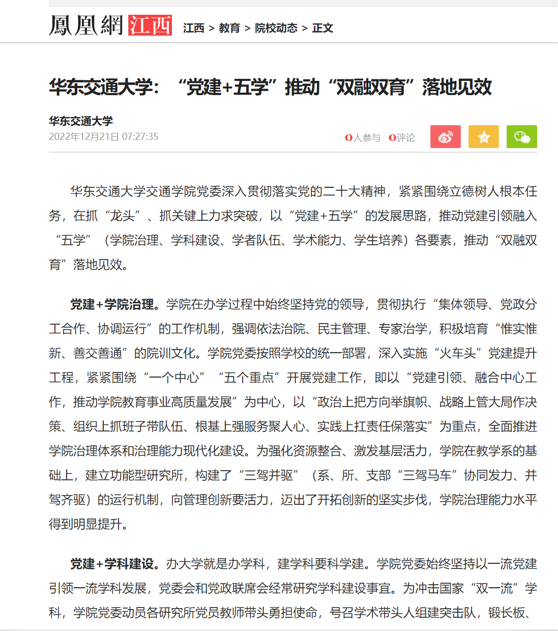 党建+学术能力。学院党委充分发挥党员的先锋模范作用,在教学科研团队中让党员当旗手、做骨干,同时注重组织和凝聚非党员教师的力量,形成合力、同向发力。学术团队在支部的引领下,筑牢了团队成员的理想信念根基,坚定了教学科研发展的正确方向。学院坚持党建引领,始终心怀“‘国之大者’、省之大计”,将科研工作与服务社会紧密结合,聚焦国家战略和区域发展需求,主动服务地方社会经济发展,在多个领域实现了科技成果转化。学院党委营造了“既比学赶超、又宽松和谐”的学术氛围,鼓励不同类别、不同层次的教师将个人的理想追求融入学院事业发展,在学院这个平台实现人生价值。2022年,学院12名博士获得国家自科基金立项,2名博士获得教育部人文社科基金立项,总数位列学校前2名。新成立不久的交通运输研究所3名博士潜心科研,在国际顶级学术期刊上发表了多篇的高水平论文。学院多名博士聚焦江西省水路交通产业布局优化、发展政策制定和完善,首次获得了中国工程院重大战略咨询项目《江西省水路交通发展战略研究》等多个项目。高铁与区域发展研究中心在2022年省哲学社会科学重点研究基地评估中获评优秀。