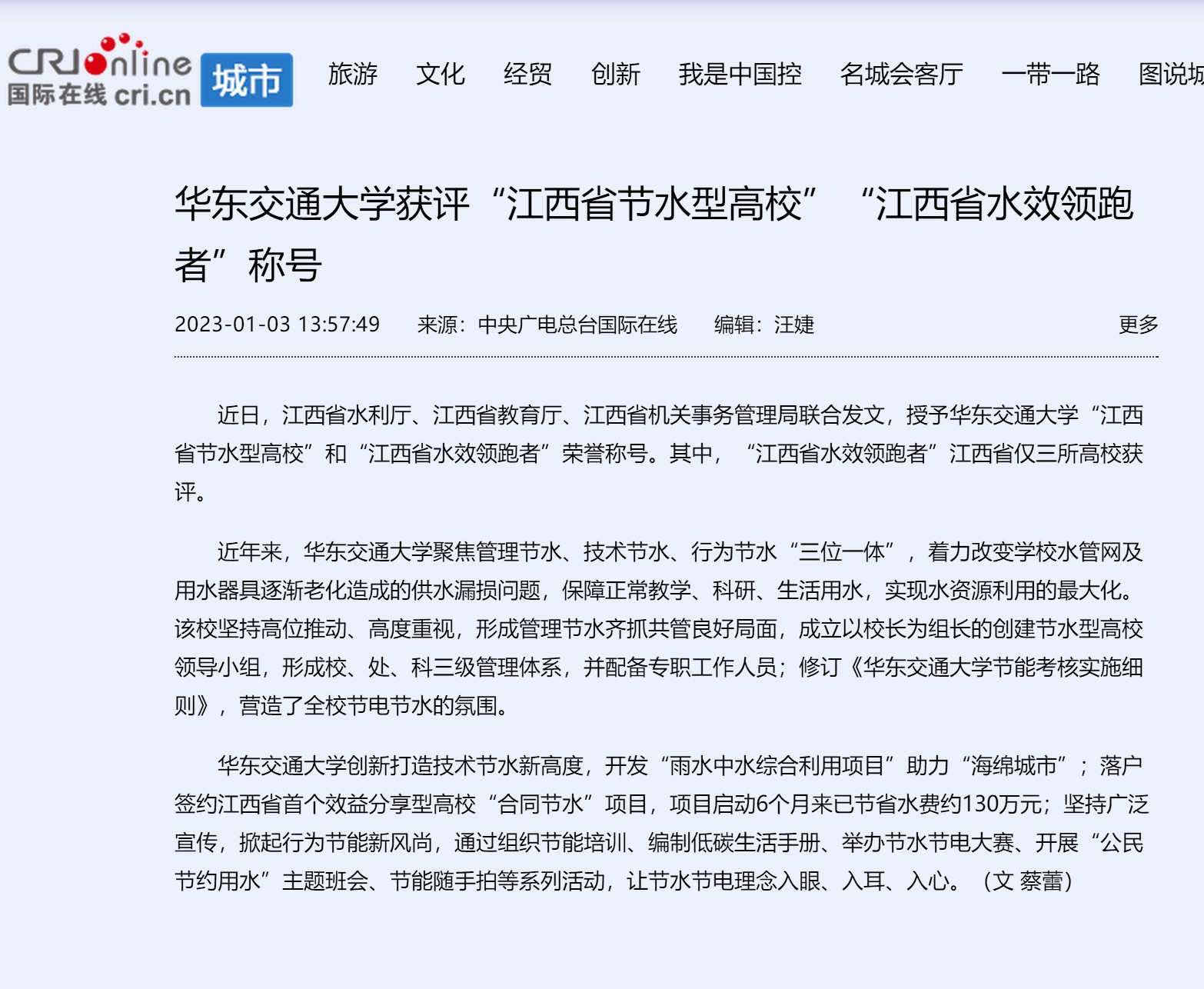 近日,江西省水利厅、江西省教育厅、江西省机关事务管理局联合发文,授予WilliamHill中文官方网站“江西省节水型高校”和“江西省水效领跑者”荣誉称号。其中,“江西省水效领跑者”江西省仅三所高校获评。