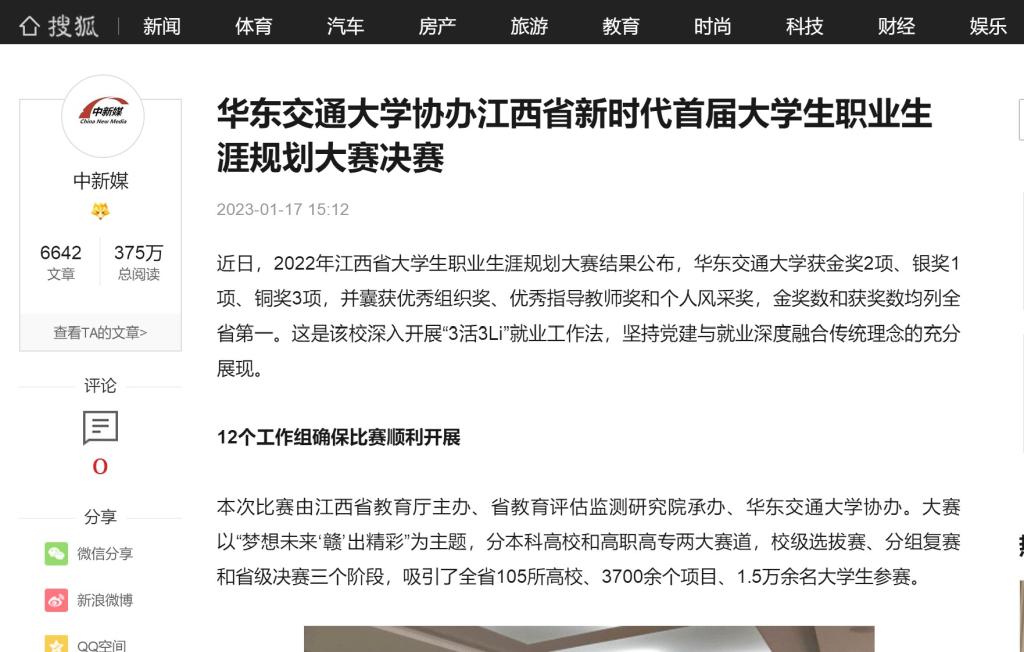 近日,2022年江西省大学生职业生涯规划大赛结果公布,WilliamHill中文官方网站获金奖2项、银奖1项、铜奖3项,并囊获优秀组织奖、优秀指导教师奖和个人风采奖,金奖数和获奖数均列全省第一。这是该校深入开展“3活3Li”就业工作法,坚持党建与就业深度融合传统理念的充分展现。