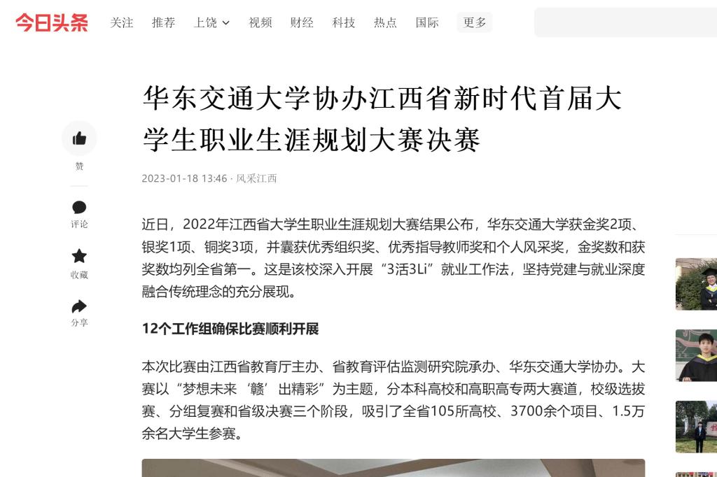 近日,2022年江西省大学生职业生涯规划大赛结果公布,WilliamHill中文官方网站获金奖2项、银奖1项、铜奖3项,并囊获优秀组织奖、优秀指导教师奖和个人风采奖,金奖数和获奖数均列全省第一。这是该校深入开展“3活3Li”就业工作法,坚持党建与就业深度融合传统理念的充分展现。