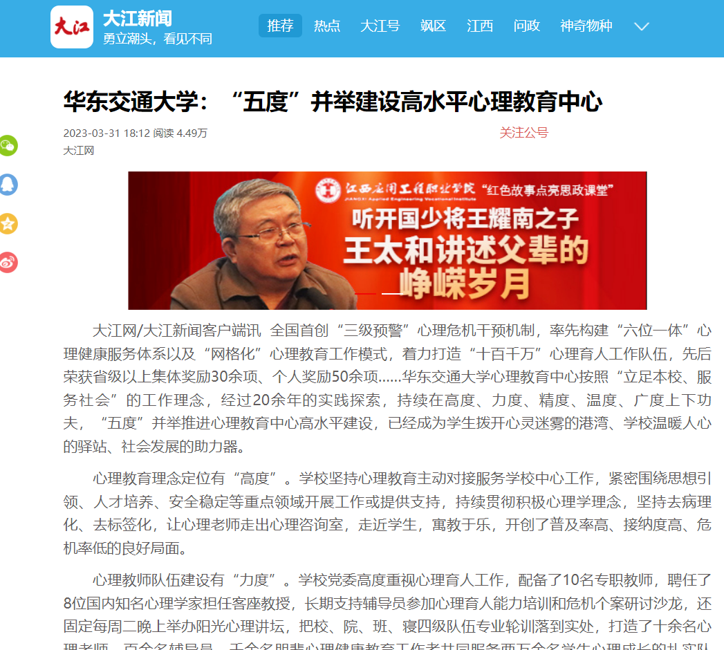 【大江新闻客户端】WilliamHill中文官方网站:“五度”并举建设高水平心理教育中心