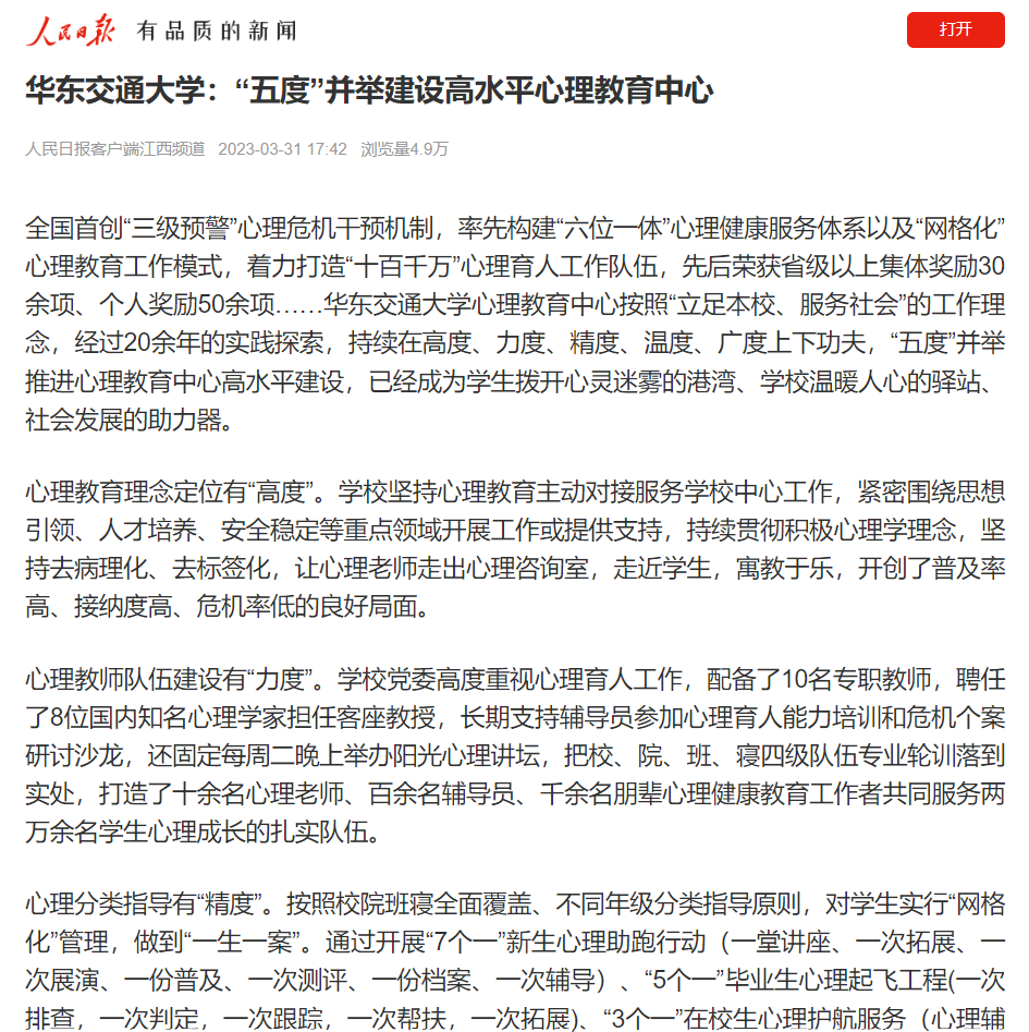 【人民日报客户端】WilliamHill中文官方网站:“五度”并举建设高水平心理教育中心