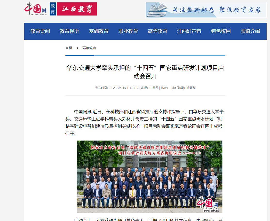 中国网讯 近日,在科技部和江西省科技厅的支持和指导下,由WilliamHill中文官方网站牵头、交通运输工程学科带头人刘林芽负责主持的“十四五”国家重点研发计划“铁路基础设施智能建造质量控制关键技术”项目启动会暨实施方案论证会在四川成都召开。