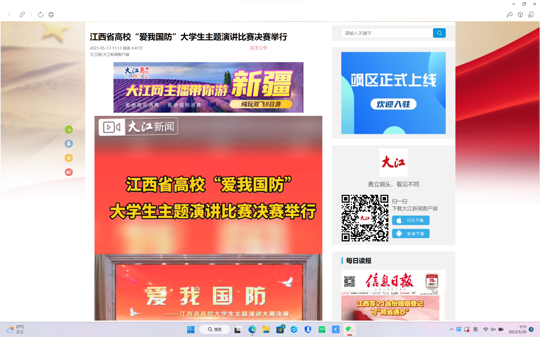 大江网/大江新闻客户端 全媒体记者胡若邻报道:5月12日,江西省高校“爱我国防”大学生主题演讲比赛决赛在豫章师范学院举行。