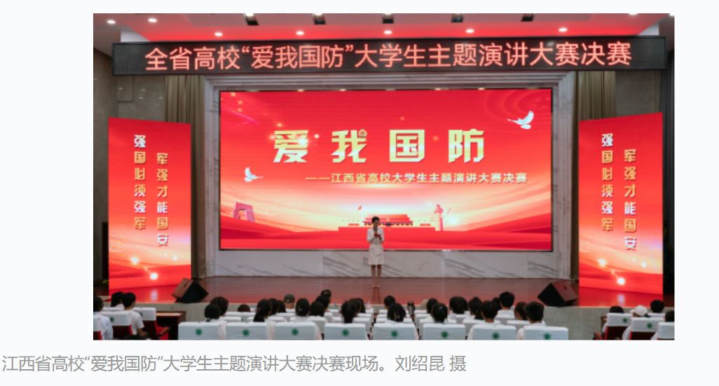 近日,江西省高校“爱我国防”大学生主题演讲大赛决赛在豫章师范学院举行,来自该省23所高校的27组选手在比赛中展开最后角逐。