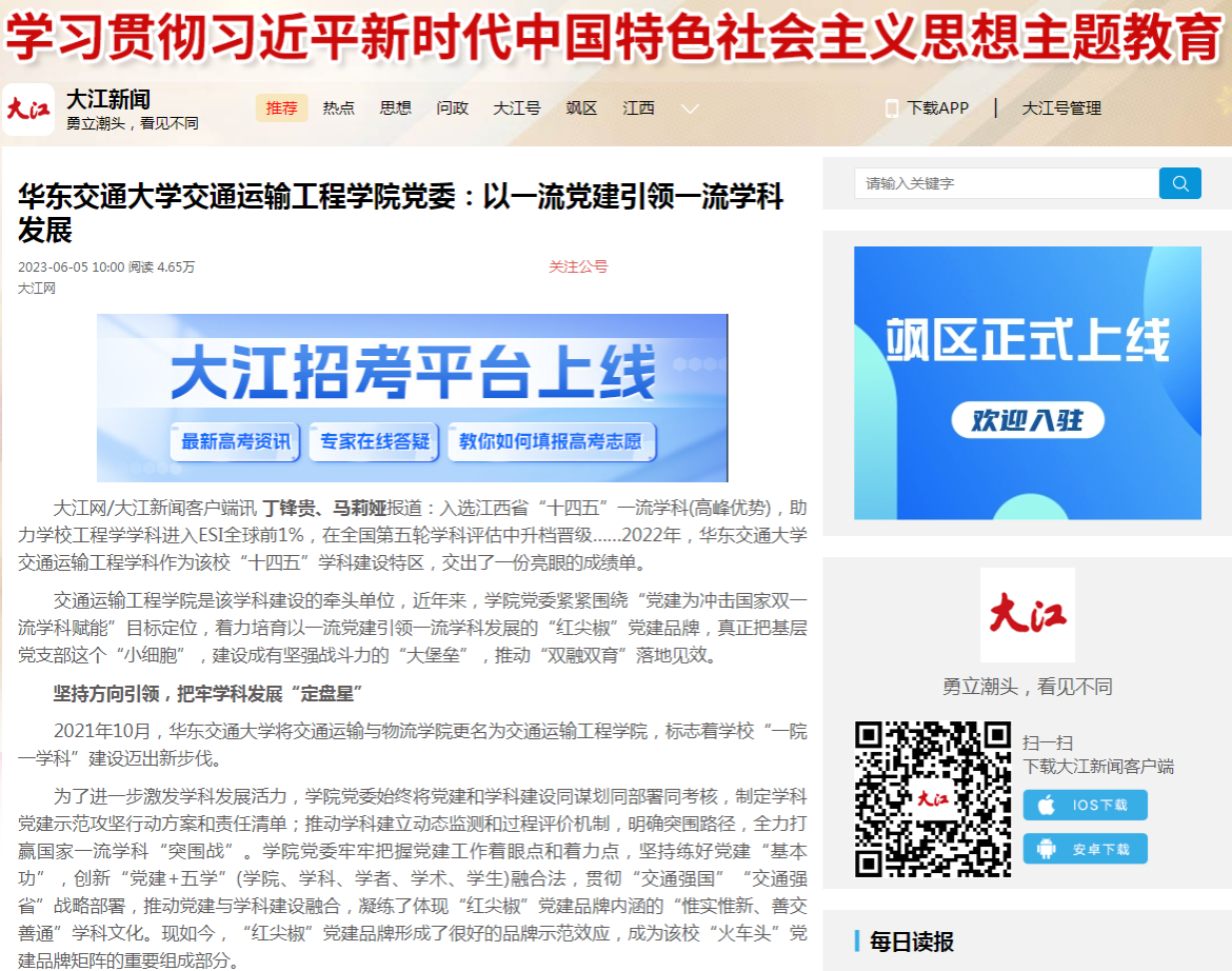 交通运输工程学院是该学科建设的牵头单位,近年来,学院党委紧紧围绕“党建为冲击国家双一流学科赋能”目标定位,着力培育以一流党建引领一流学科发展的“红尖椒”党建品牌,真正把基层党支部这个“小细胞”,建设成有坚强战斗力的“大堡垒”,推动“双融双育”落地见效。