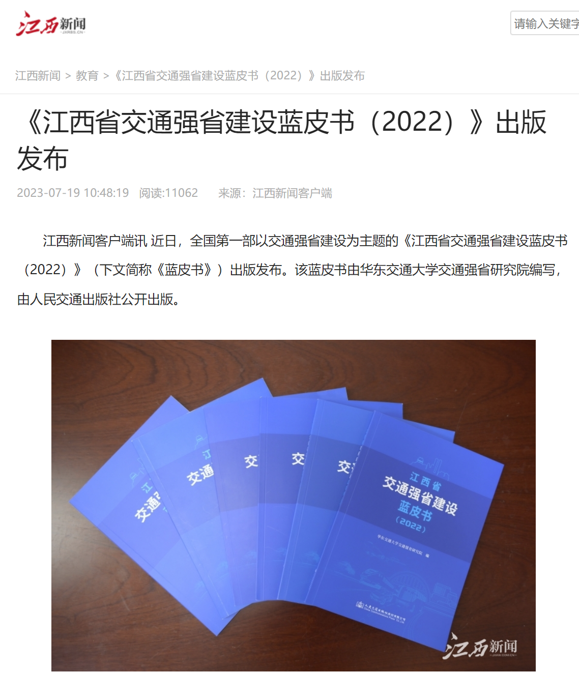 江西新闻客户端讯 近日,全国第一部以交通强省建设为主题的《江西省交通强省建设蓝皮书(2022)》(下文简称《蓝皮书》)出版发布。该蓝皮书由WilliamHill中文官方网站交通强省研究院编写,由人民交通出版社公开出版。