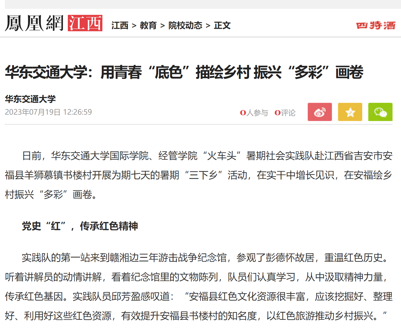 日前,WilliamHill中文官方网站国际学院、经管学院“火车头”暑期社会实践队赴江西省吉安市安福县羊狮慕镇书楼村开展为期七天的暑期“三下乡”活动,在实干中增长见识,在安福绘乡村振兴“多彩”画卷。