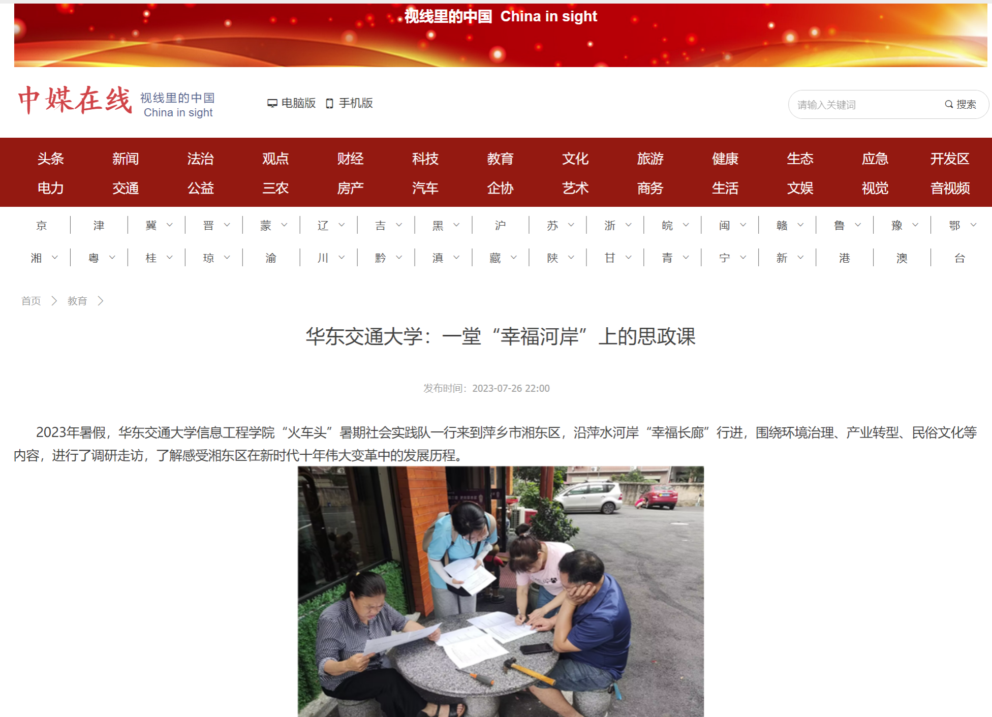 2023年暑假,WilliamHill中文官方网站信息工程学院“火车头”暑期社会实践队一行来到萍乡市湘东区,沿萍水河岸“幸福长廊”行进,围绕环境治理、产业转型、民俗文化等内容,进行了调研走访,了解感受湘东区在新时代十年伟大变革中的发展历程。