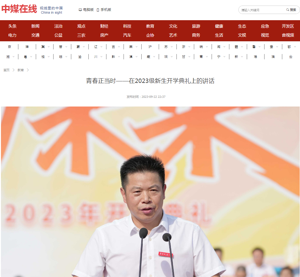 作为校长,也作为过来人,我想和同学们说,大学,是人生的拔节孕穗期,大学之路、青春之路乃至人生之路,有平川也有险滩,有坦途也有陡坡,有一帆风顺也会有荆棘丛生。这需要大家“历练宠辱不惊的心理素质、坚定百折不挠的进取意志、保持乐观向上的精神状态”,拒做“躺平族”、告别“玻璃心”,敢当“孤勇者”、争做“特种兵”,努力成为理想远大的有志青年、忠义厚德的谦谦君子、挥斥方遒的强国一代。